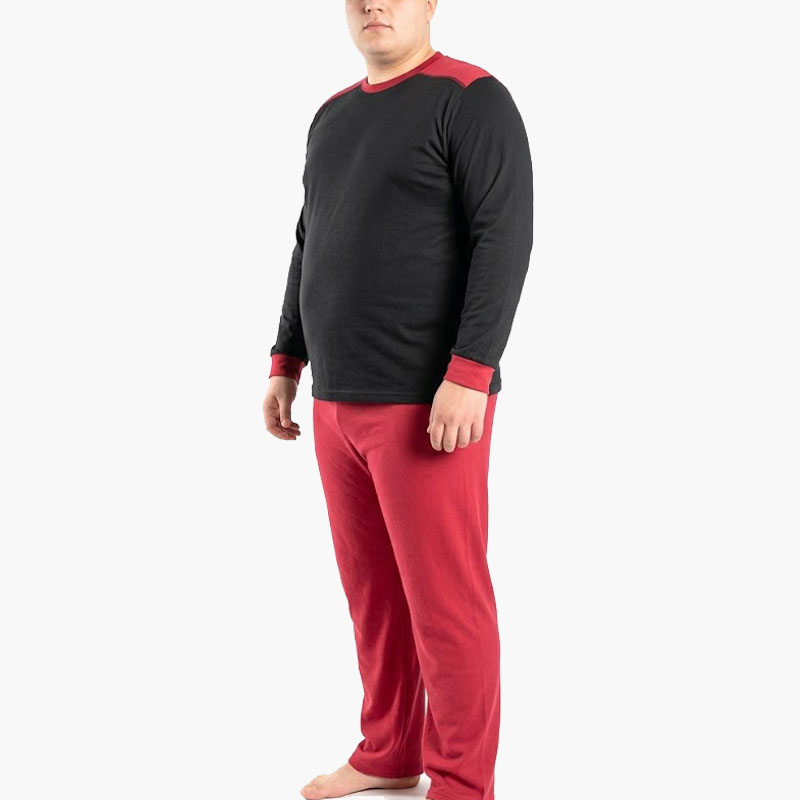 Πυτζάμα Ανδρική Plus Interlock Μαύρη Μπορντό παντελόνι
