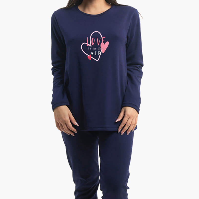 A.A UNDERWEAR Πιτζάμα Γυναικεία 100% Cotton Ιnterlock Σκούρο Μπλε με στάμπα