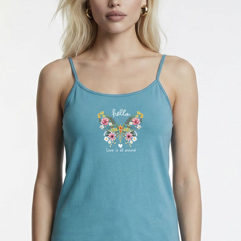 A.A UNDERWEAR Πιτζάμα Λεπτή Τιράντα Γυναικεία 100% Cotton Τυρκουάζ Πεταλούδα