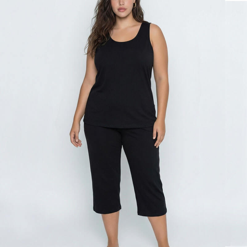 Πιτζάμα plus γυναικεία τιράντα με κάπρι παντελόνι από βαμβακερό ύφασμα.  Δροσερή καλοκαιρινή πιτζάμα, για άνετο ύπνο.